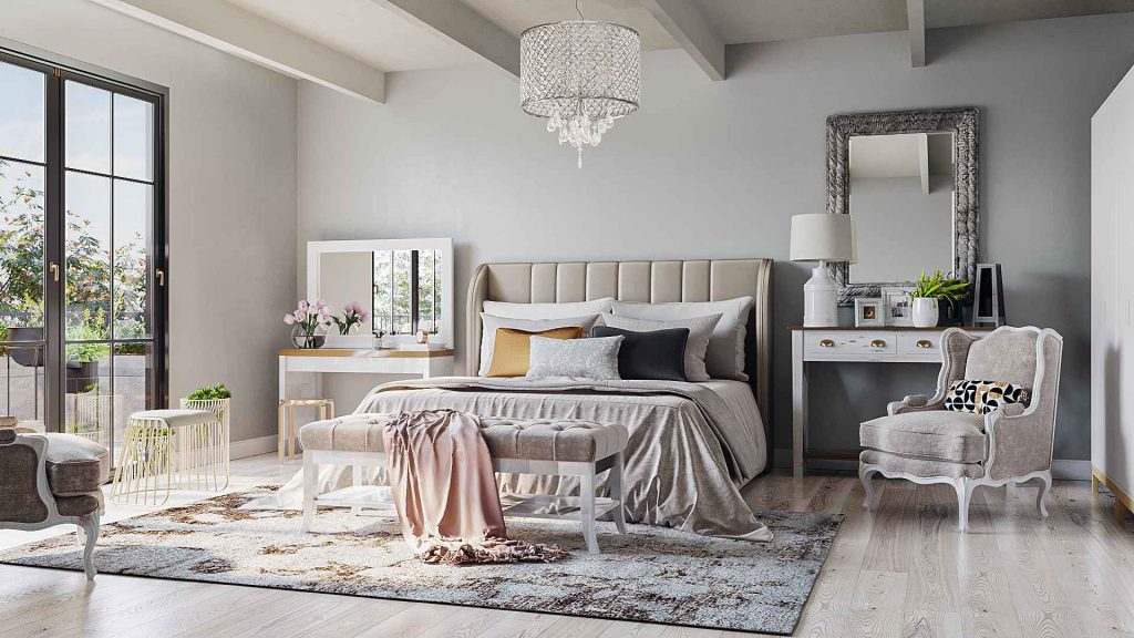 Step into tranquillity with this beautifully rendered bedroom, where contemporary sophistication meets luxurious comfort.